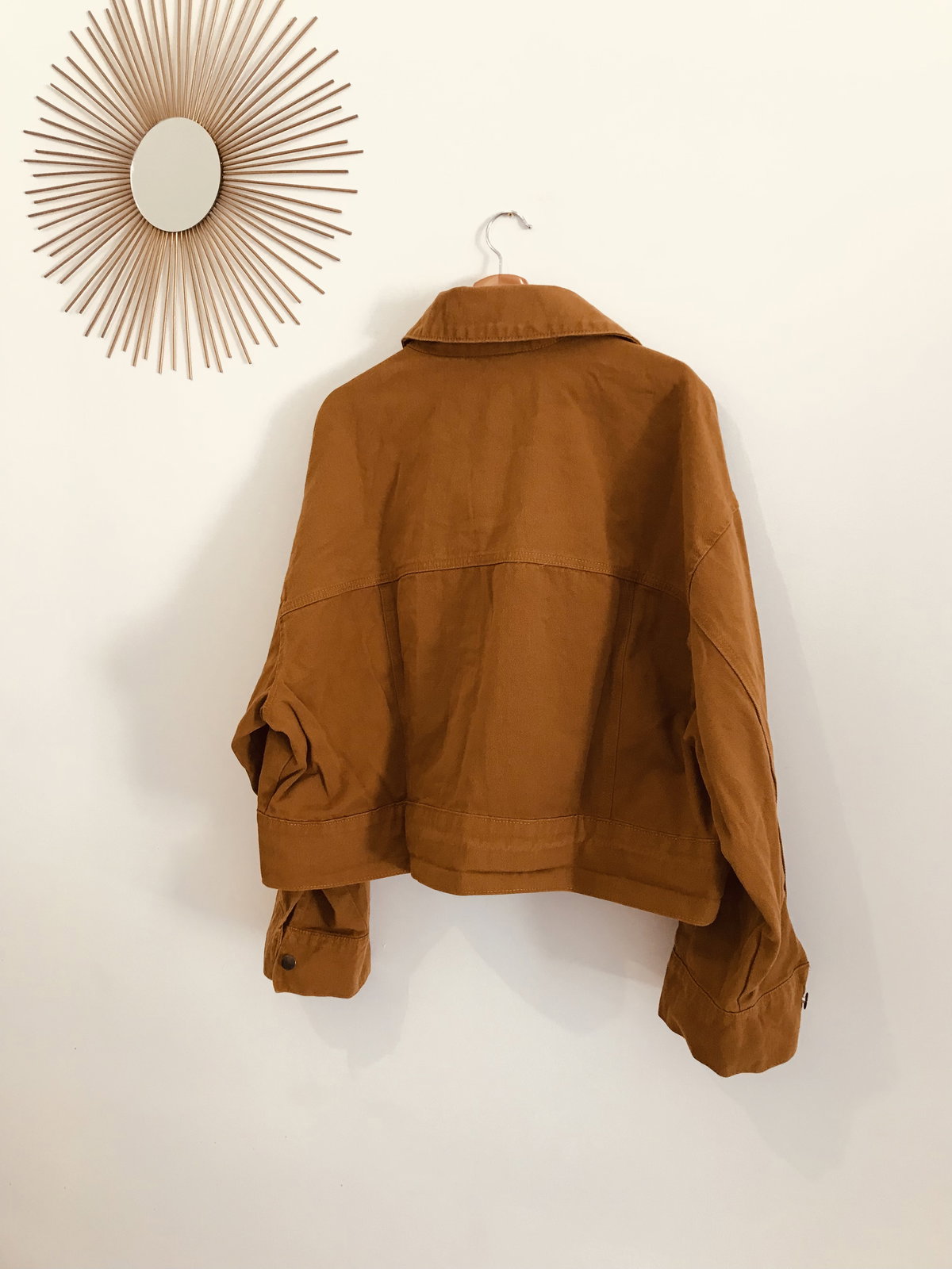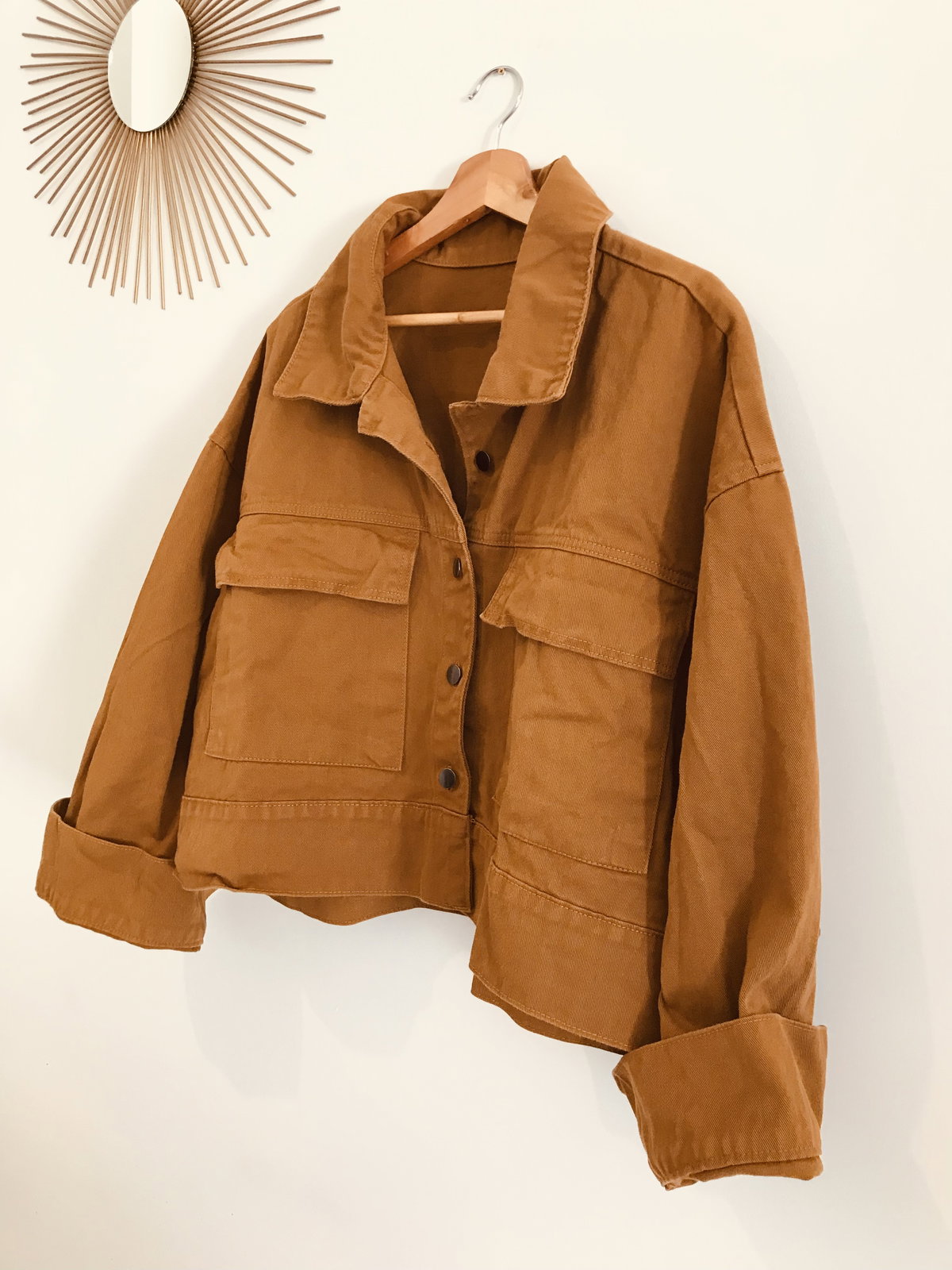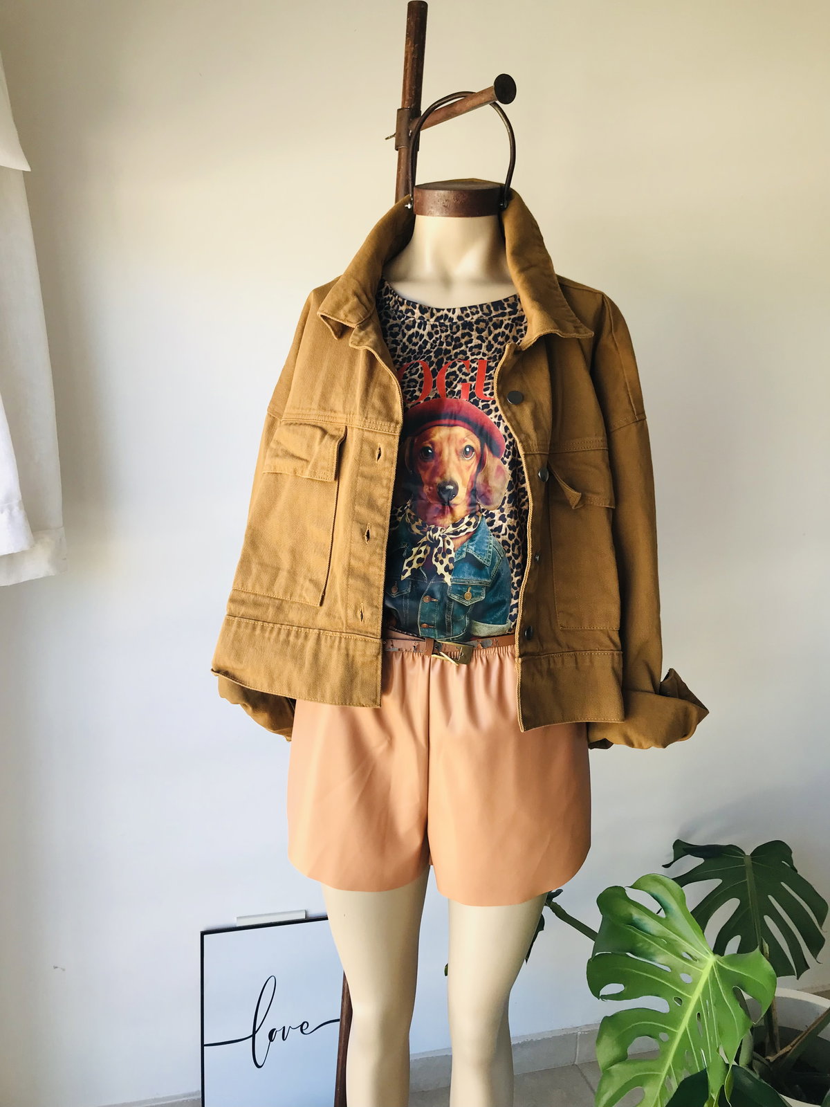 Bolsillos amplios delanteros, botones metálicos y corte oversize, el color dulce de leche es único!