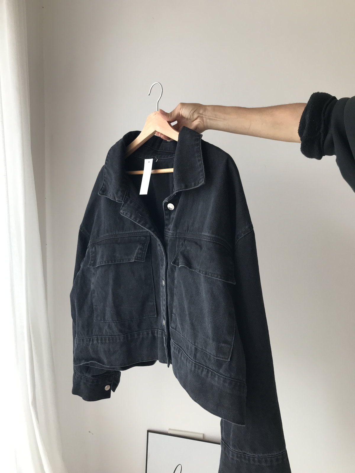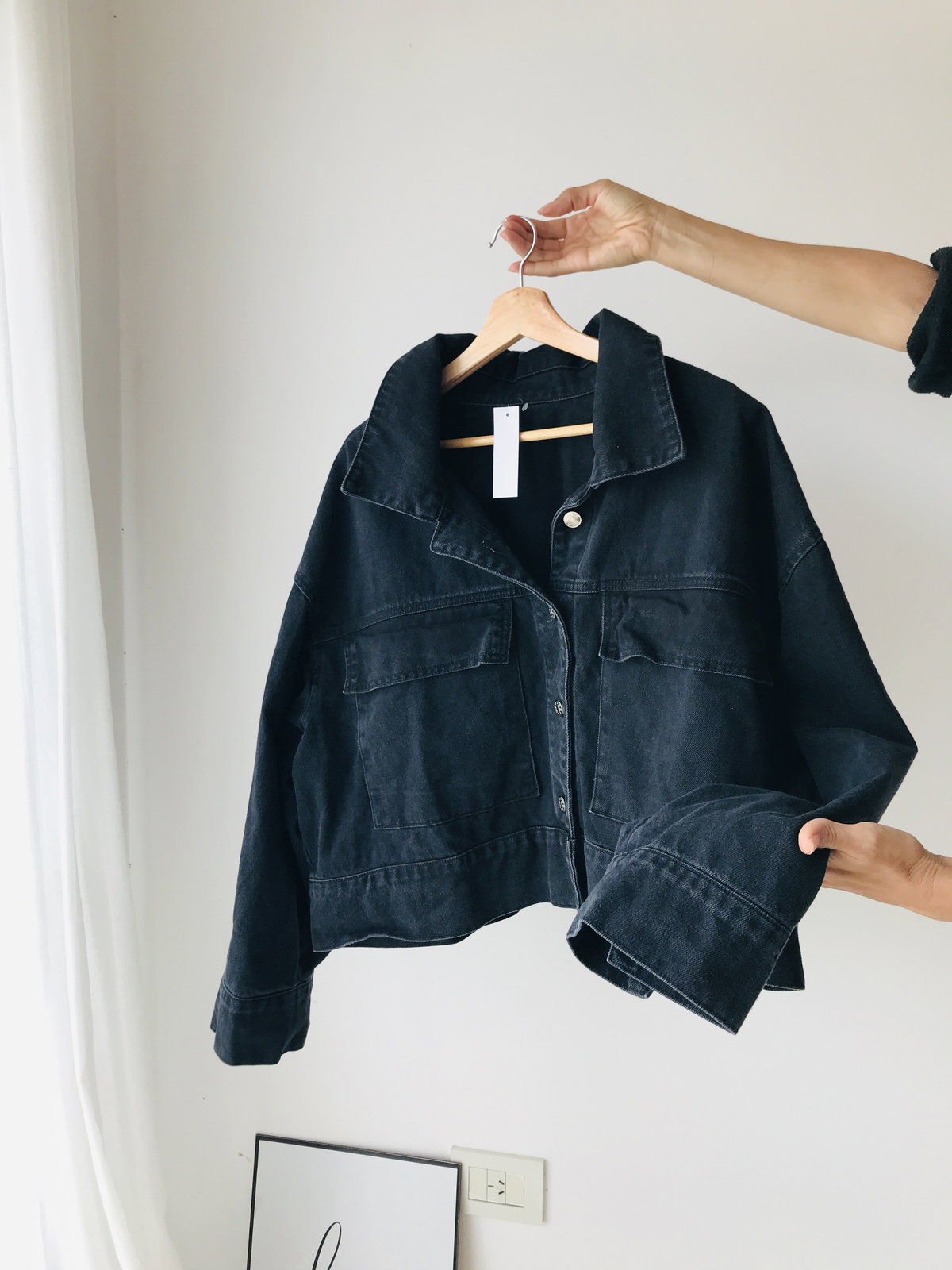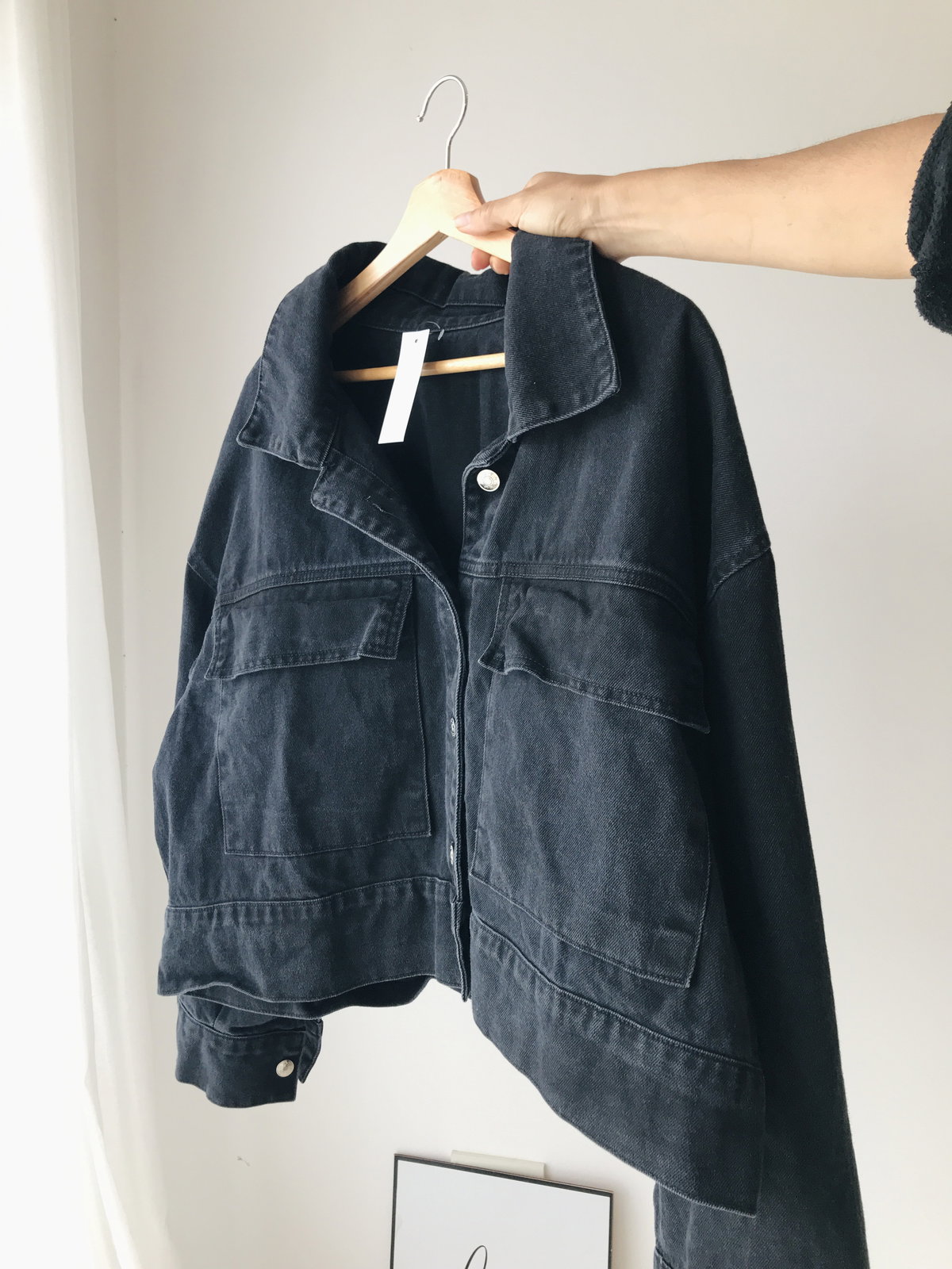 Bolsillos amplios delanteros botones metálicos y corte oversize