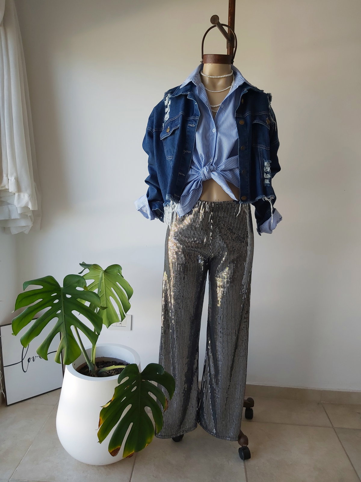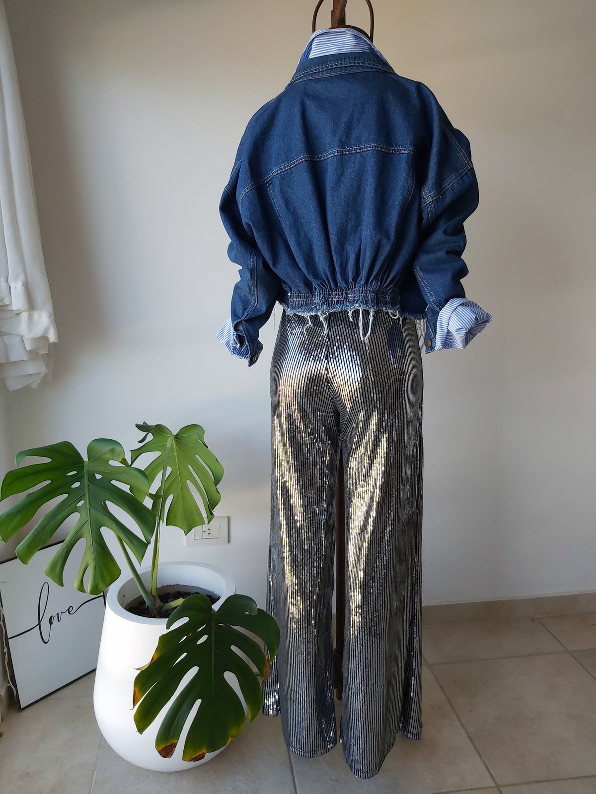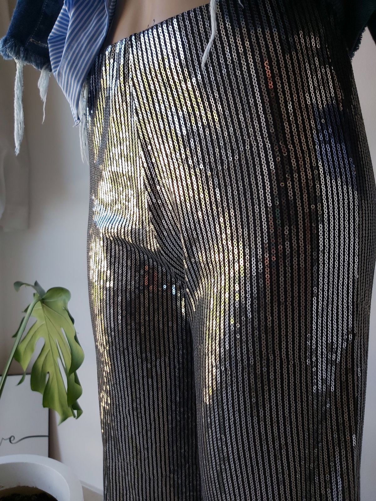 Pantalón Wide leg de lentejuelas con elástico en la cintura