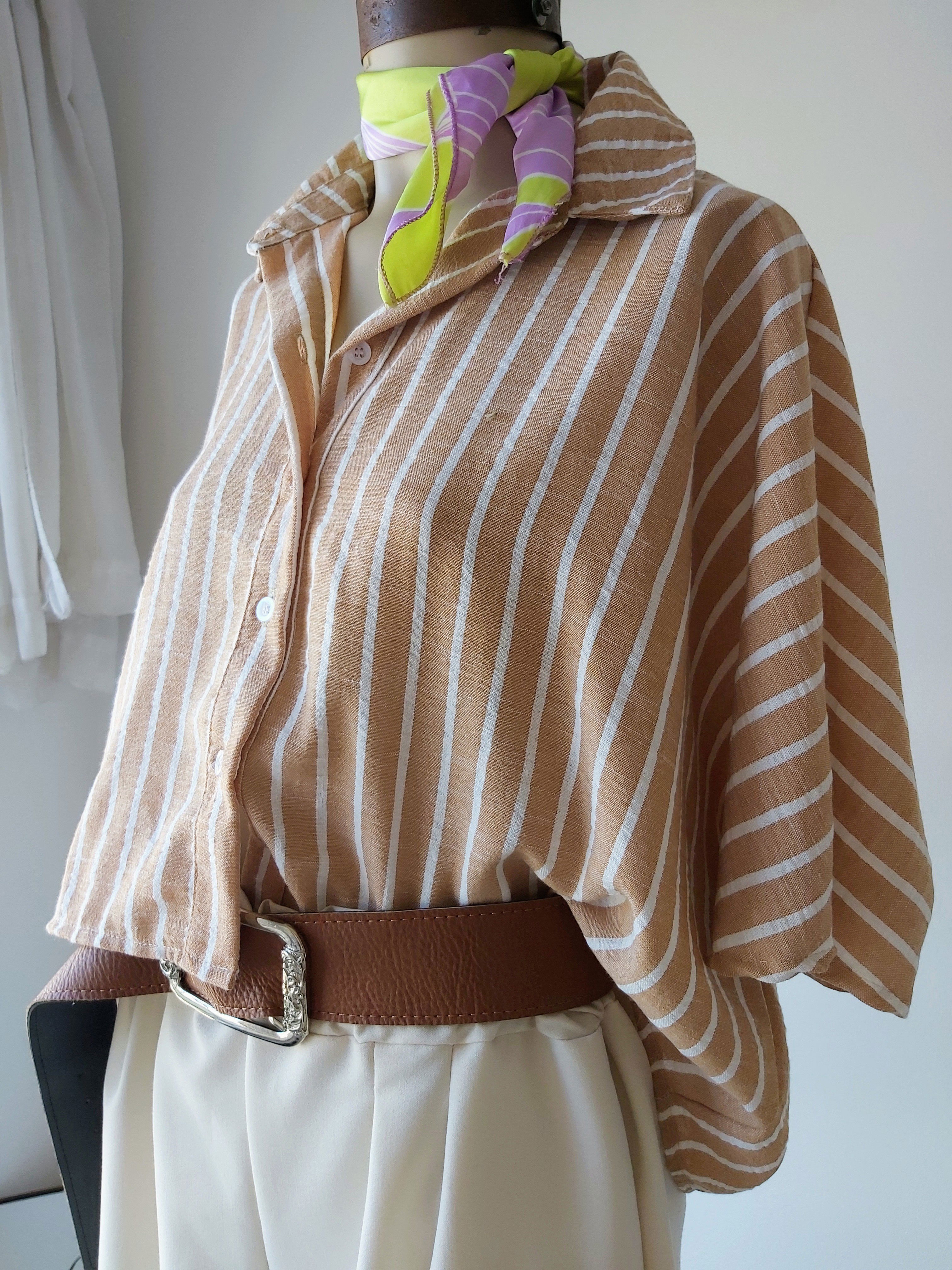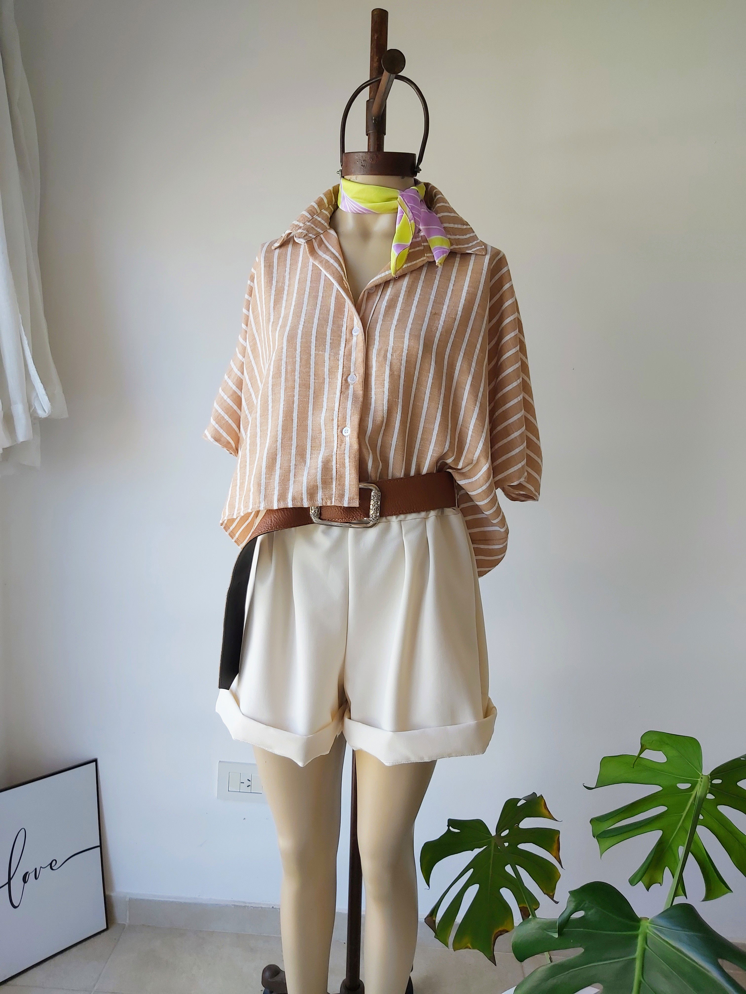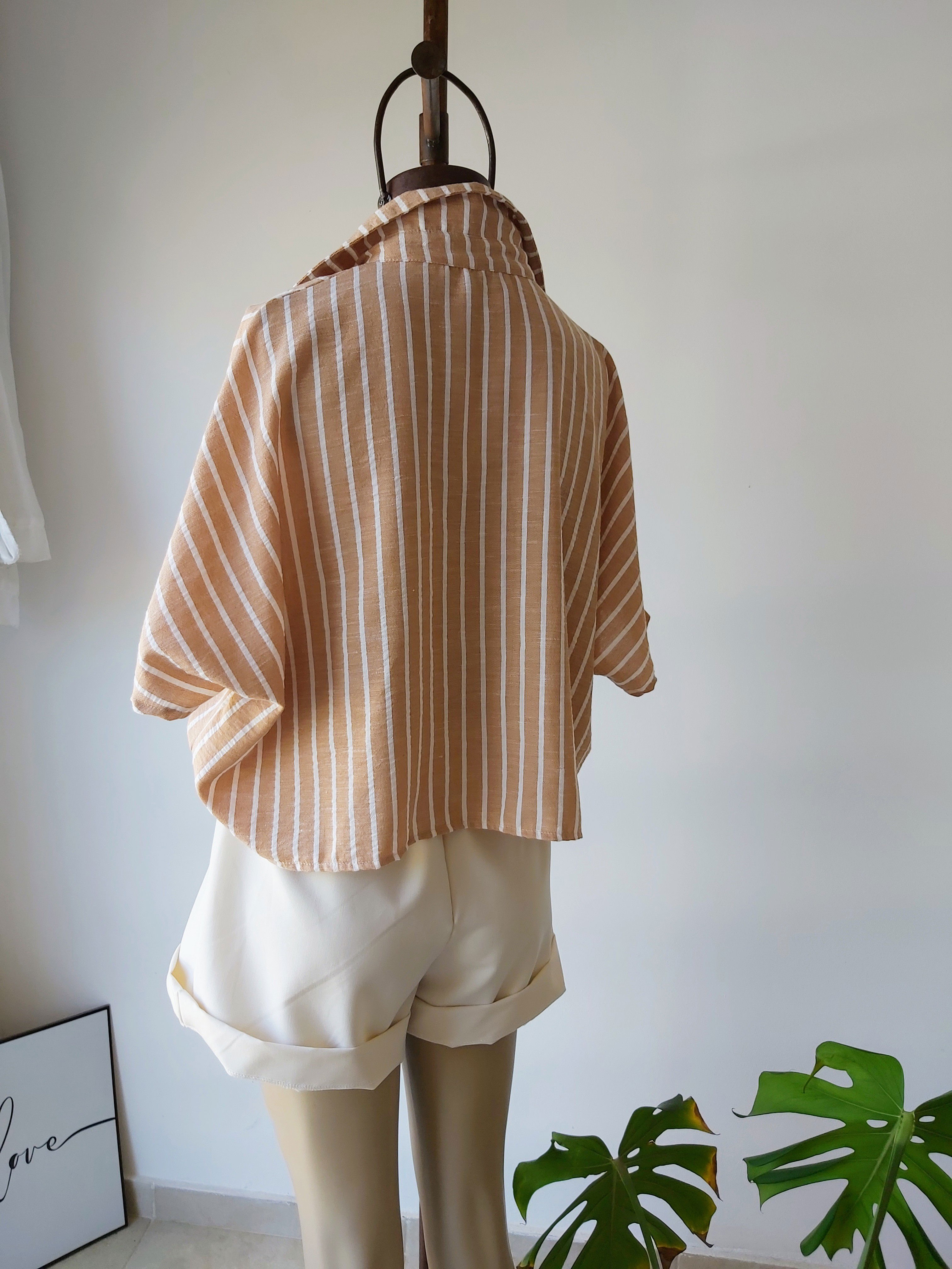 Camisa tipo oversize diseño crop manga corta