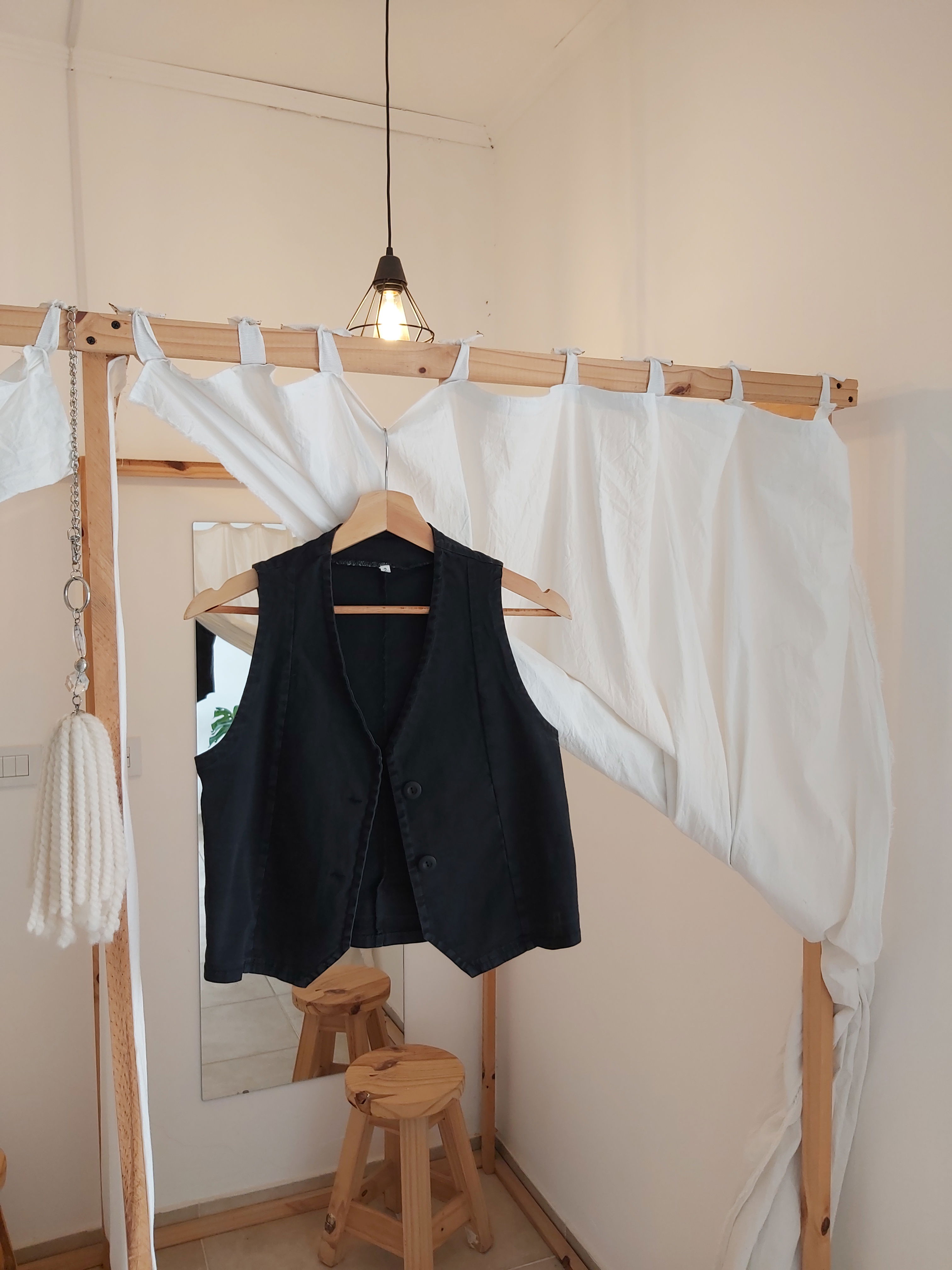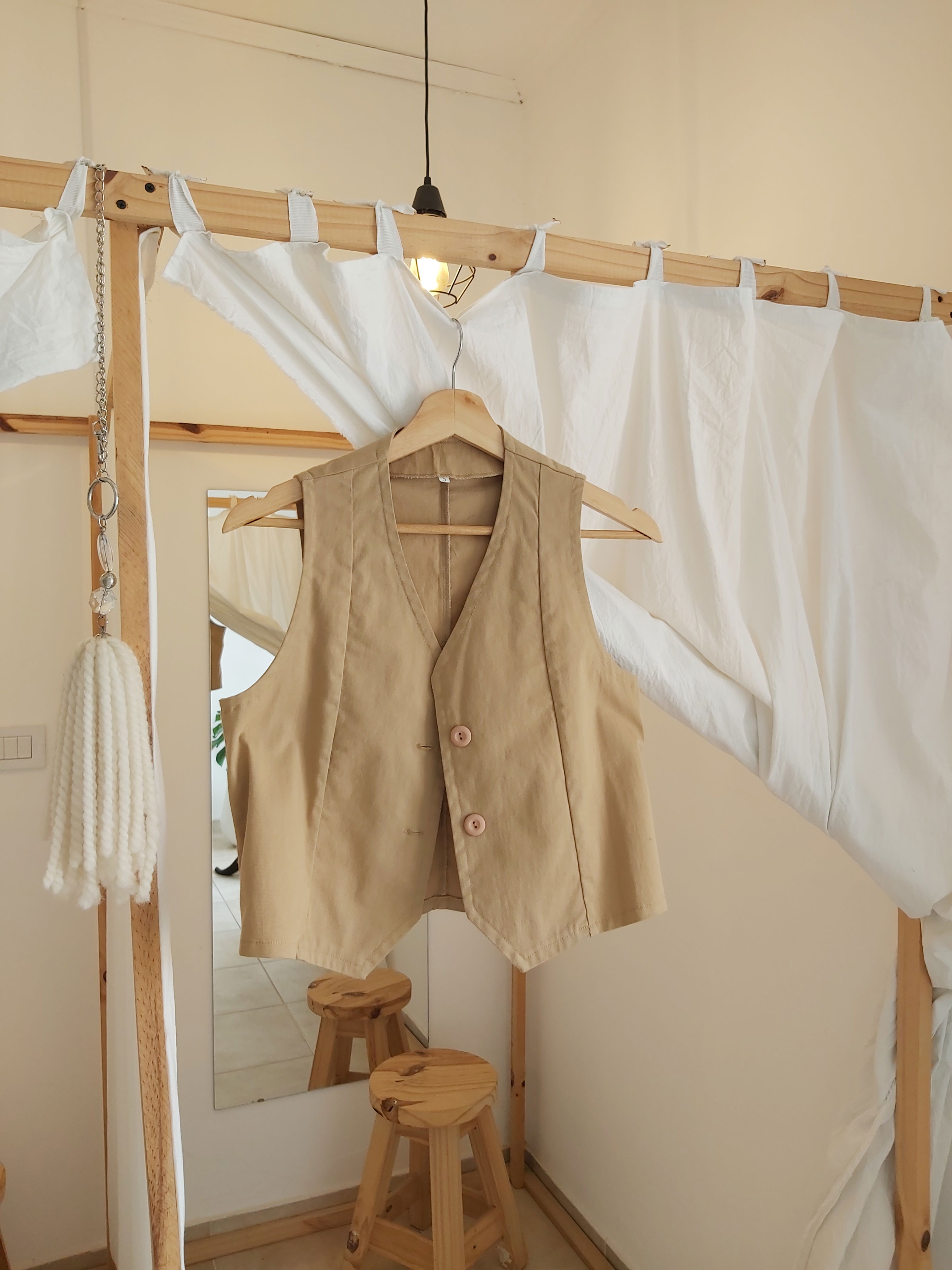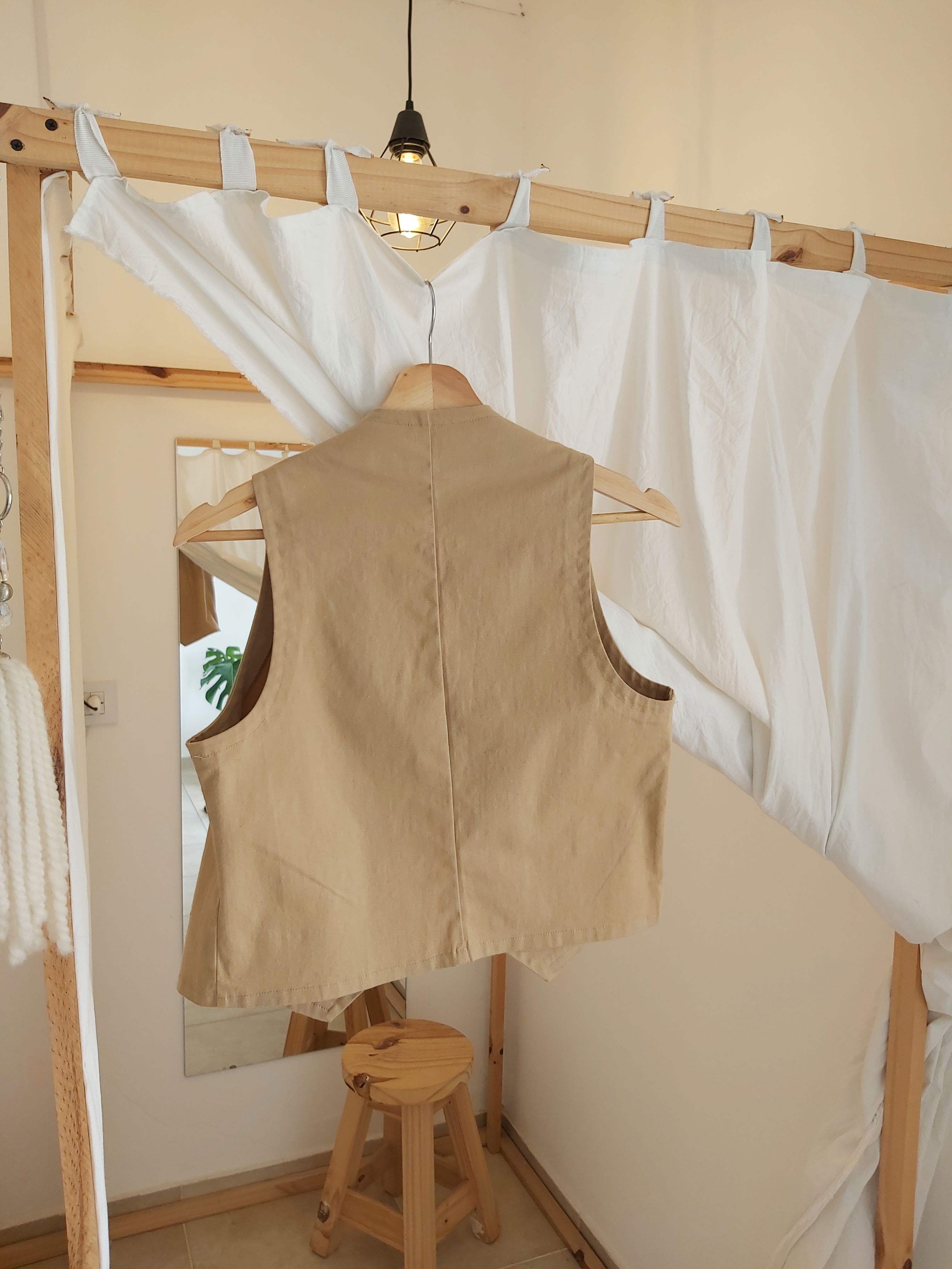 Chaleco corte sastrero de gabardina elatizada con dos botones delanteros