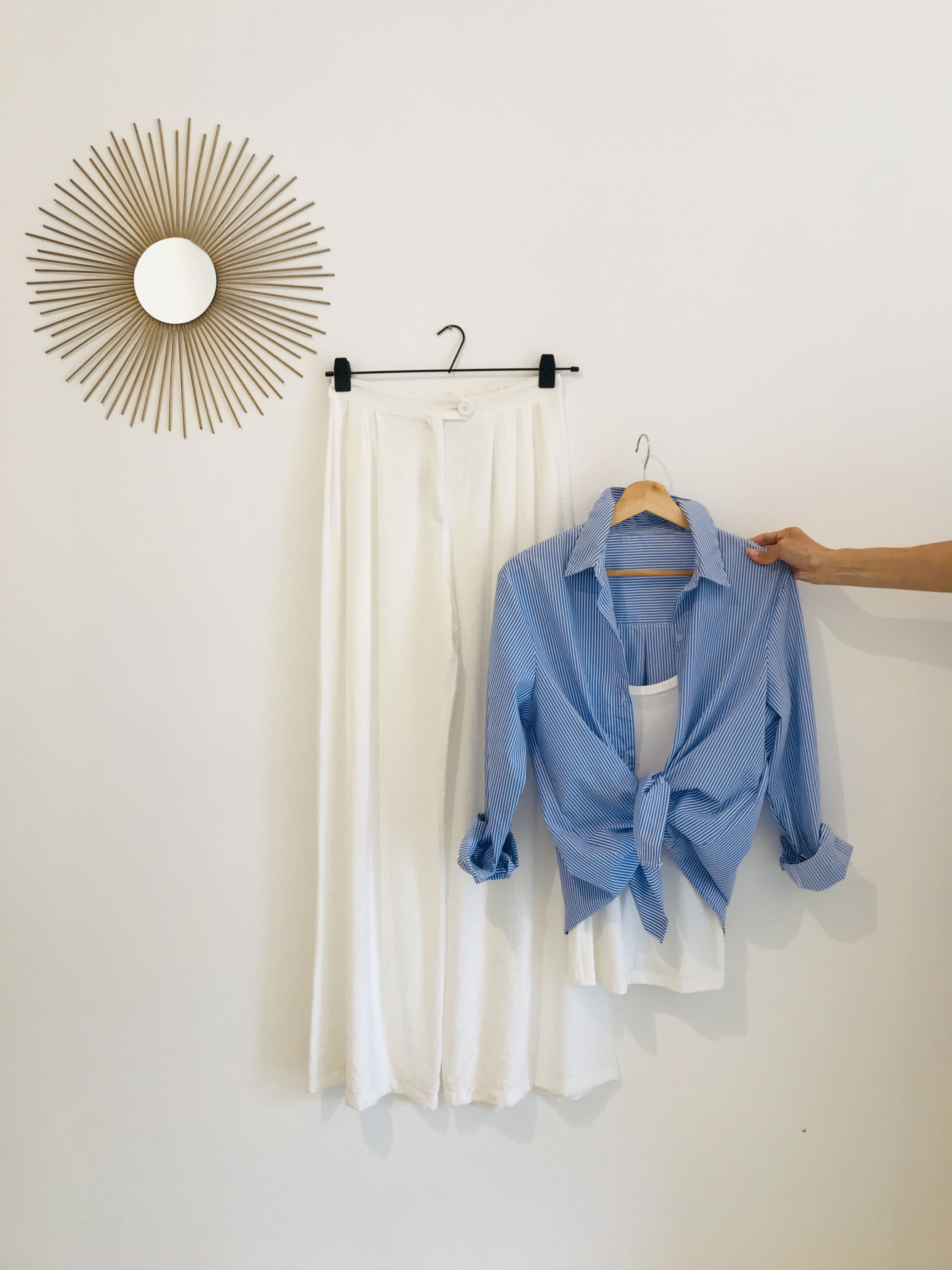 Tres prendas: musculosa básica, camisa y pantalón