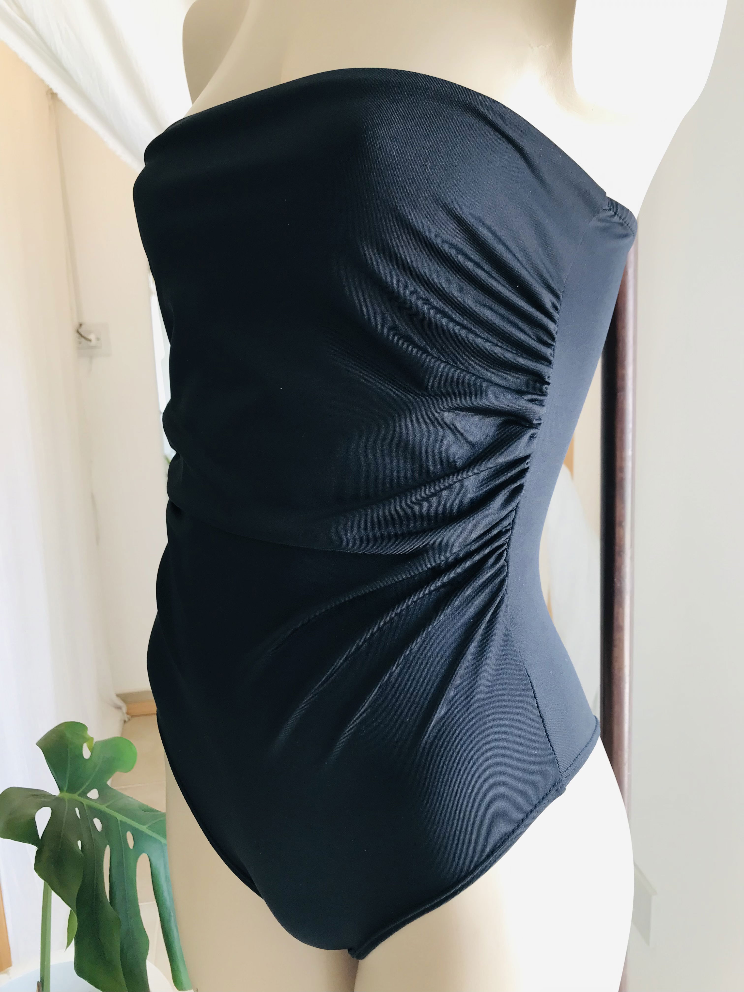 Body straples drapeado en sus lados y broches para cerrar