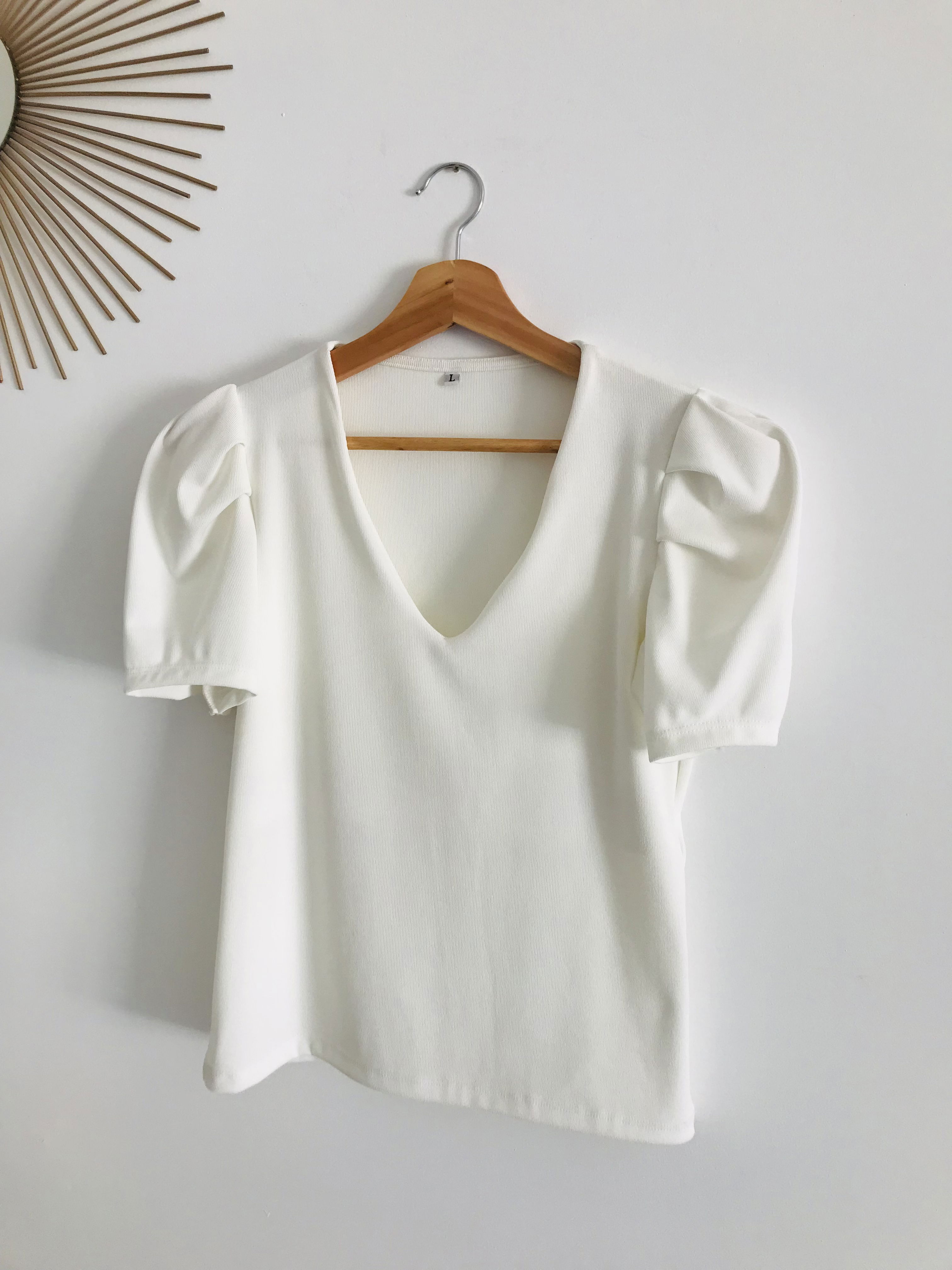 Remera de morley mangas princesa y escote v
