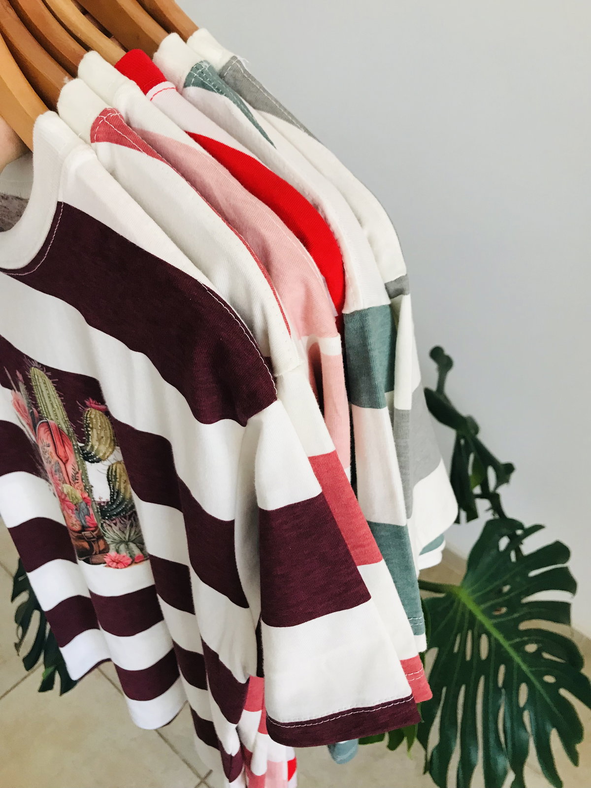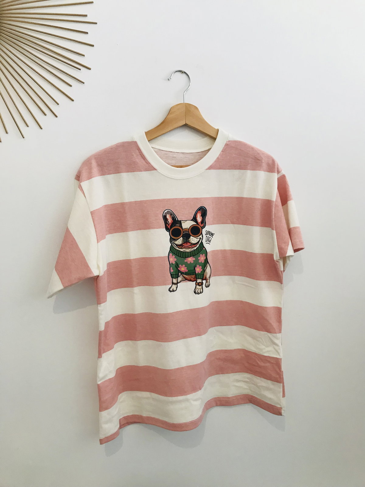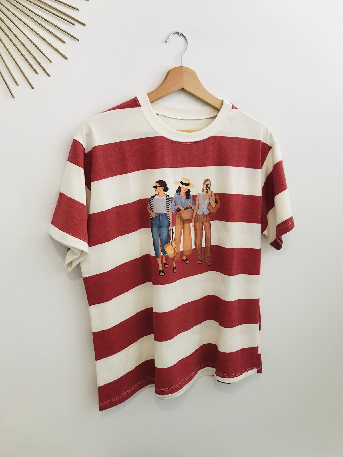 Remera de algodón a rayas con estampa es de esas que levantan cualquier look sin esfuerzo