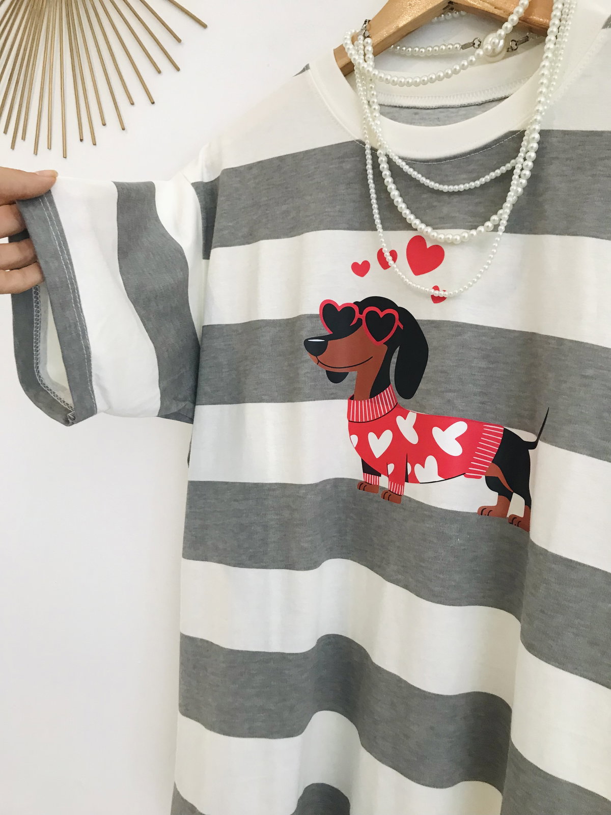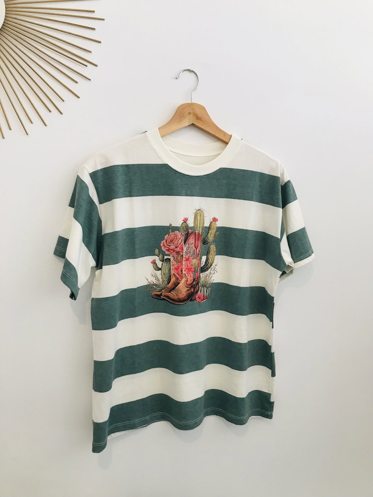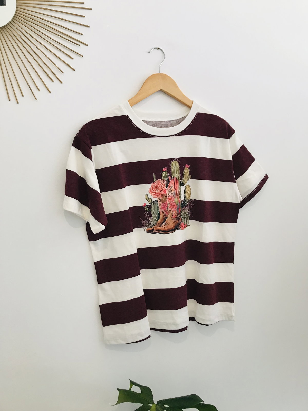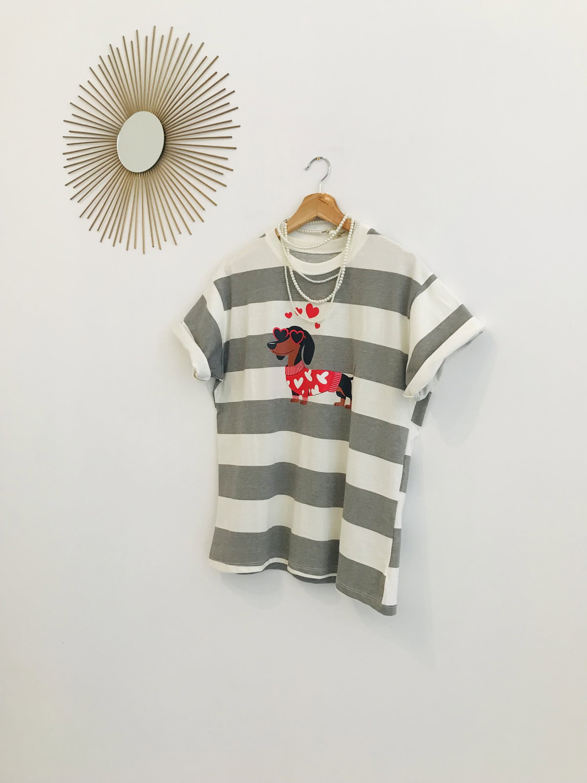 Remera de algodón a rayas con estampa es de esas que levantan cualquier look sin esfuerzo